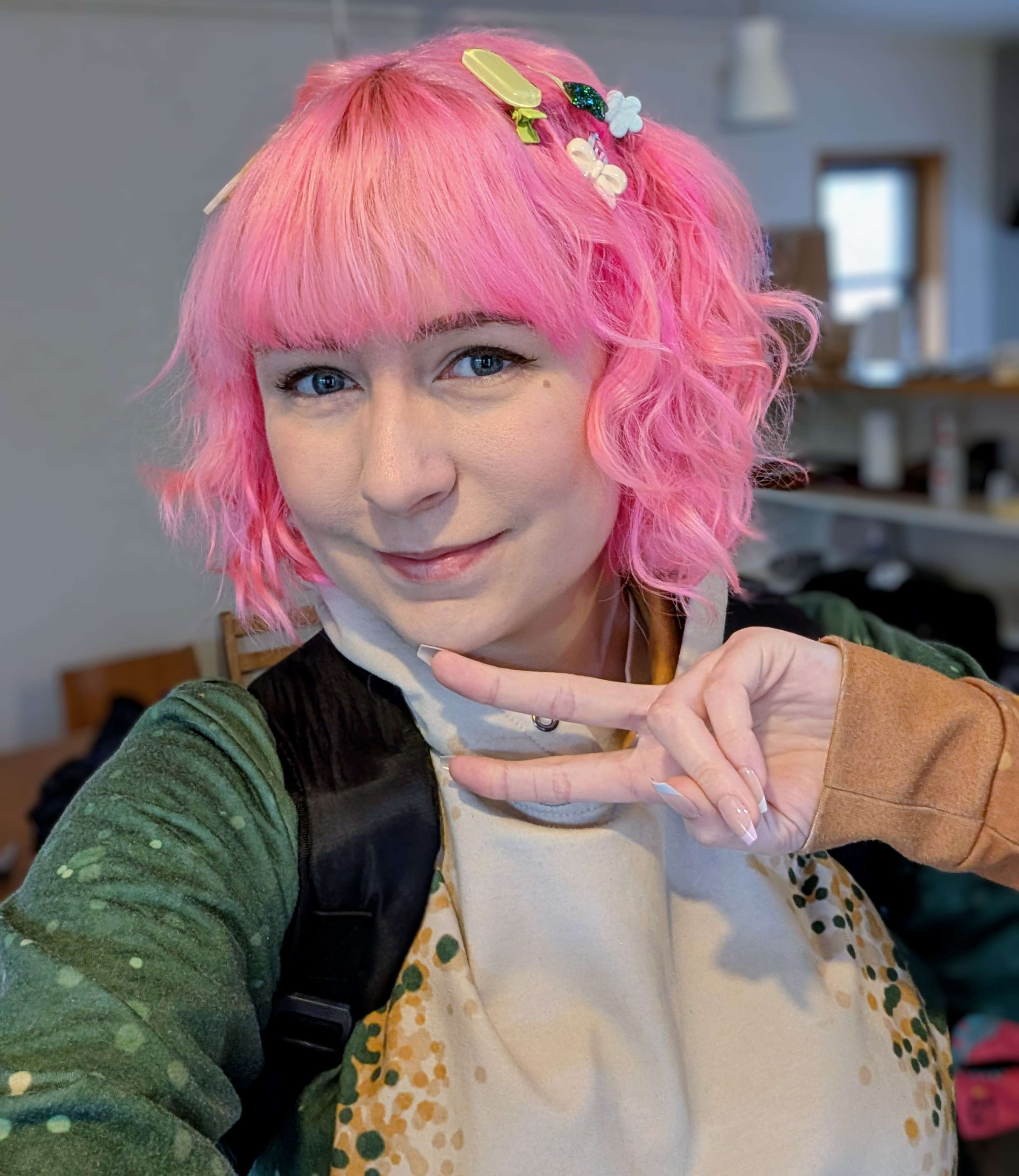 I also design accessories, stickers, and stationery, and do some of my own screen printing and heat press printing. I'm based in the Twin Cities area in Minnesota but love getting to travel for conventions!